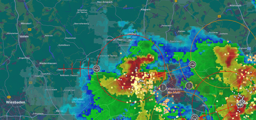 Wir haben Mai und wir haben auch noch keine Extreme Hitze, trotzdem kann es auch im Mai zu schon Unwetterartigen Gewittern kommen. Das besondere am gestrigen Donnerstag war die teilweisen Ortsfesten bzw. langsam ziehende Gewitter mit sehr hohen Regenraten und einer doch schon beachtlichen Blitzrate. Der Frankfurter Westen kam recht glimpflich davon, hier vielen 6 Liter regen und die Zellen zogen Östlich dran vorbei. Selbst am Abend neubildende Zellen über Wiesbaden und Mainz treffen den Frankfurt Westen nicht.